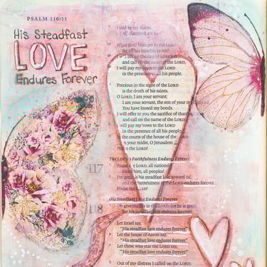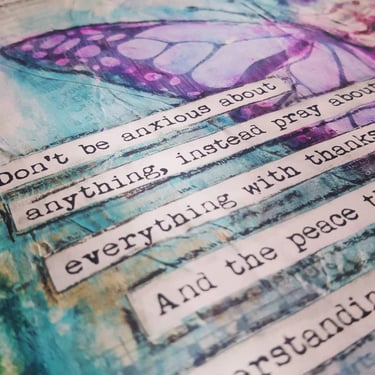 Projects include mixed media on canvas, in a journal, in your Bible or even on a piece of cardboard.