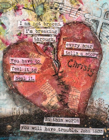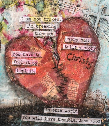 We all have scars... some physical, some emotional. Journey through a powerful mixed media project of heart and soul using just scraps and basic supplies.